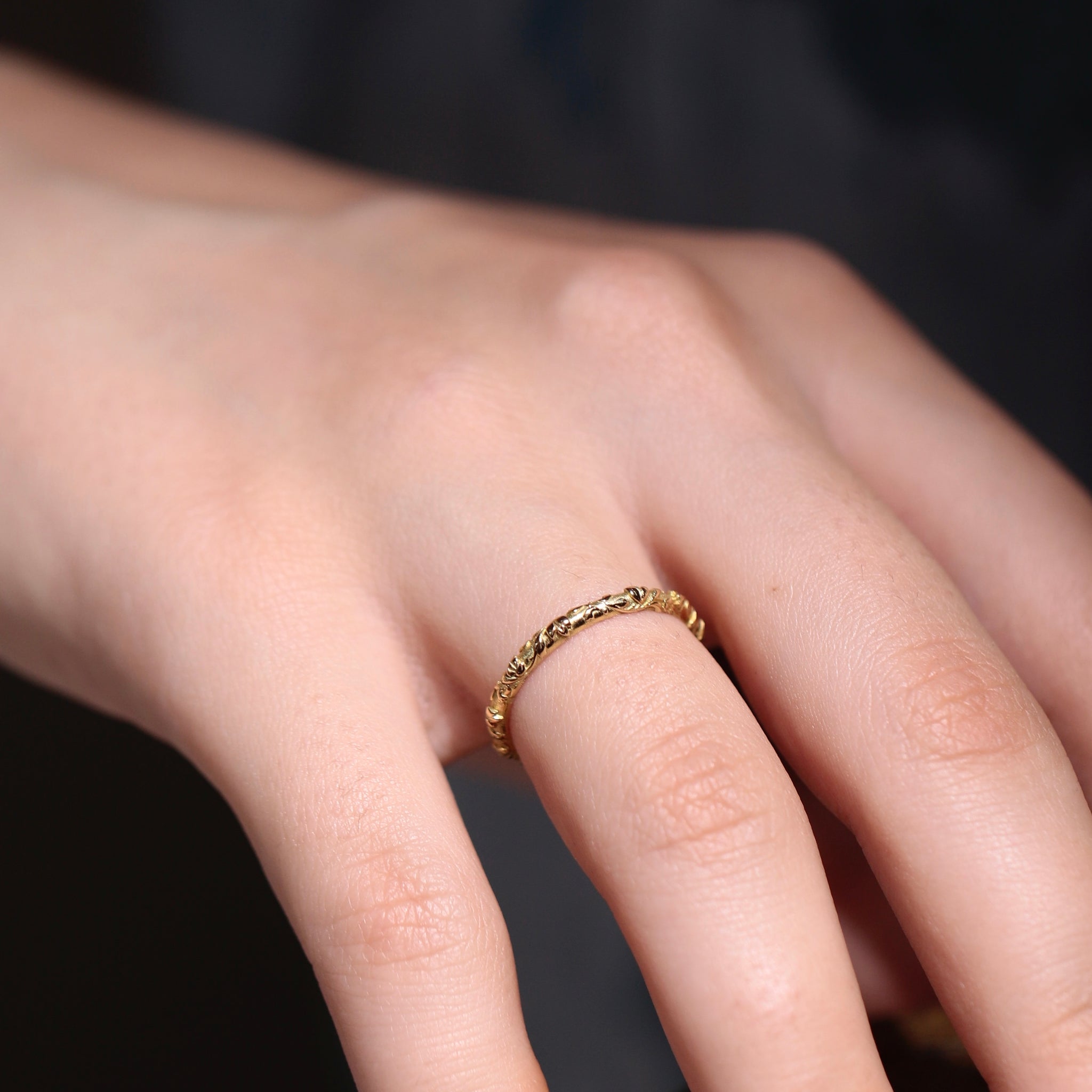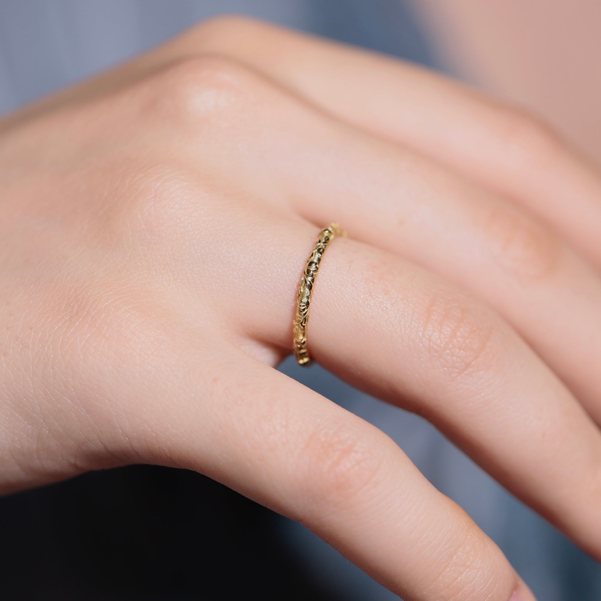 L’anneau Ida capture la poésie du vivant. Inspiré des feuillages anciens et des forêts mythiques, il s’enroule autour du doigt comme une tige d’or ciselée à la main.